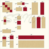Мы будем шить 2 типа блоков, размер которых 17 х 17 дюймов (17,5 х 17,5 дюйма с припусками ¼ дюйма на шов) Размеры всех блоков и элементов блока указаны на схемах и ДАНЫ С ПРИПУСКАМИ НА ШОВ ¼ дюйма!!