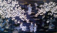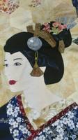 Это пока центральная часть. Вокруг девочек в кимоно частично панели, частично блоки бабушкиного сада - 6-гранники.  В планах нижнюю часть вокруг девушек выстегать шестеренками. А вот верх - ветки цветущей сакуры.