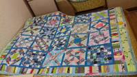 девочки,а я всеже дошила один долгострой,блоки училась шить еще года 2 назад,может больше,не помню и еще из всякой мелочи было собрано в полотно голубые 5см квадратики и уже и не помню для чего собирала и вот и они тоже пригодились и вписались в тему и тазики пошерстила,и вобщем все в кучу и собрала в одеяло не знаю для чего,но внутри хб ватин и оно получилось очень теплое,как раз по нынешнему лету :D размер 150на200 стежка в шов по квадратам