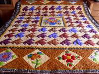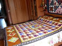 лежали аппликации аж с 2012 года. Потом два переезда и т.д. и т. п..... и вот только сейчас закончила это покрывало. Размер 220х165 см Дизайн, исполнение и стежка мои. Ткань Кауфман серия "мрамор"